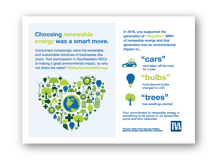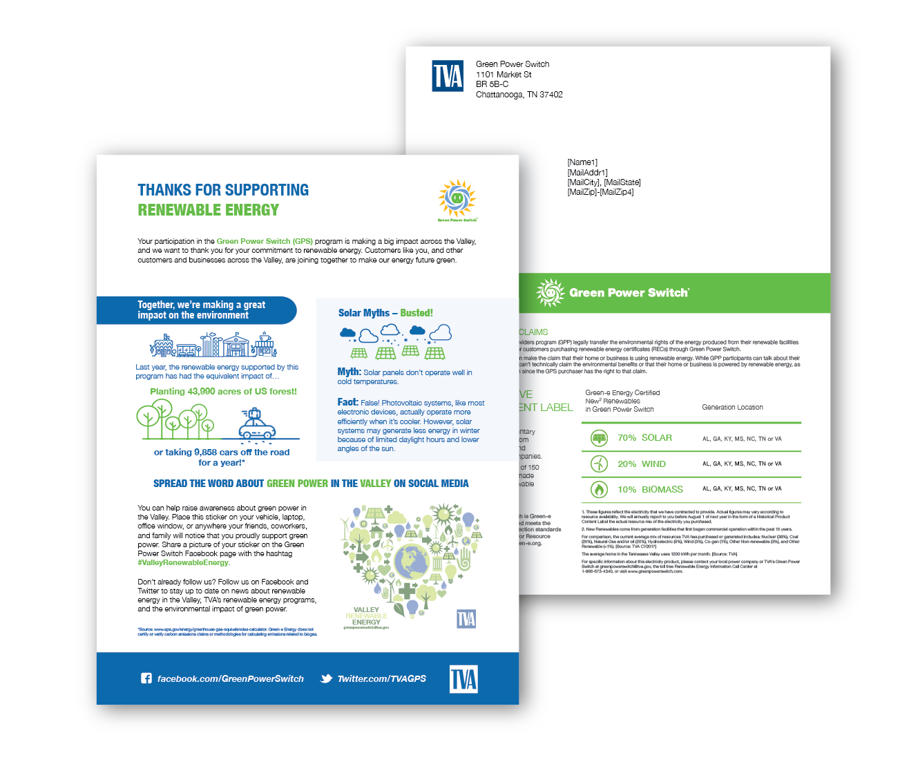 A yearly letter and postcard highlighting the "love Renewable Energy" campaign + sticker.